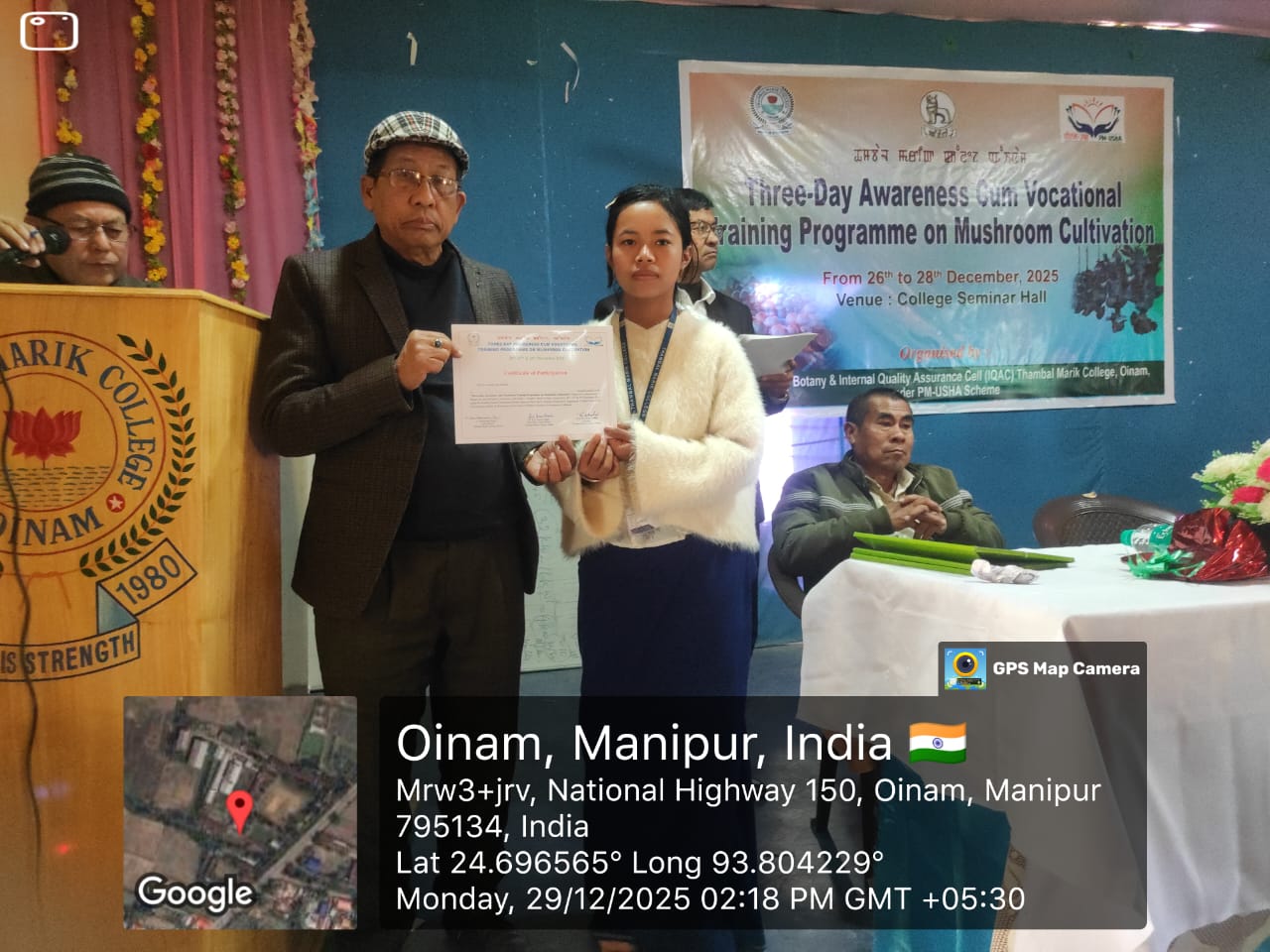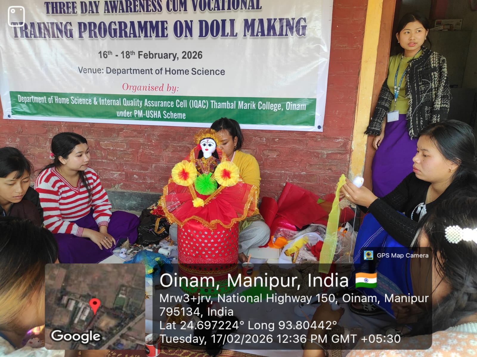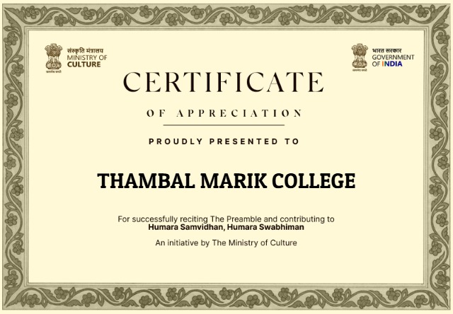 The Thambal Marik College is a NAAC, Bangalore accredited ‘B’ Grade Government co-educational College located at Oinam, Bishnupur District, Manipur. It was established on the 28th September, 1980 as a private college with financial support from late Shri Laishram Ibobi Singh (donor) in memory of his loving mother late Smt. Laishram (O) Thambalmarik Devi of Sega road, Imphal with the dedicated peoples, sympathizers and local educationists of Oinam, Heinoubok, Maibam, Oinam Khunou, Keinou, Irengbam headed by late Shri Y.Yaima Singh, hono’ble ex M.P., Lok Shabha. It was converted into a full-fledged Government college on 28th March, 2018. The college is providing education in both Science and Arts streams. It was granted temporary affiliation in the year 1983 by the Manipur University. Further, the college obtained the status of permanent affiliation from Manipur University in the year 1997 and included under section 2(f) & 12(b) of UGC act 1956. From its inception, the college opened 10+2 courses as well as B.A. and B.Sc. courses. Now, the college offers honours and general courses in 15 subjects and one having vocational course in Tourism and Hospitality management under RUSA, Government of Manipur. Department of Zoology, Physics, History and Mathematics are providing research facilities under Manipur University, Canchipur and other Universities. Moreover, some UGC, DBT and DST granted research projects are also underway in Zoology, Physics, Chemistry, Statistics, Home Science, Botany, Mathematics and Anthropology departments of the college.